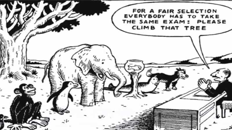 We used the below comic picture to illustrate how our own home-grown Baccalaureate curriculum demands far more of the children than simply to pass the same tests: