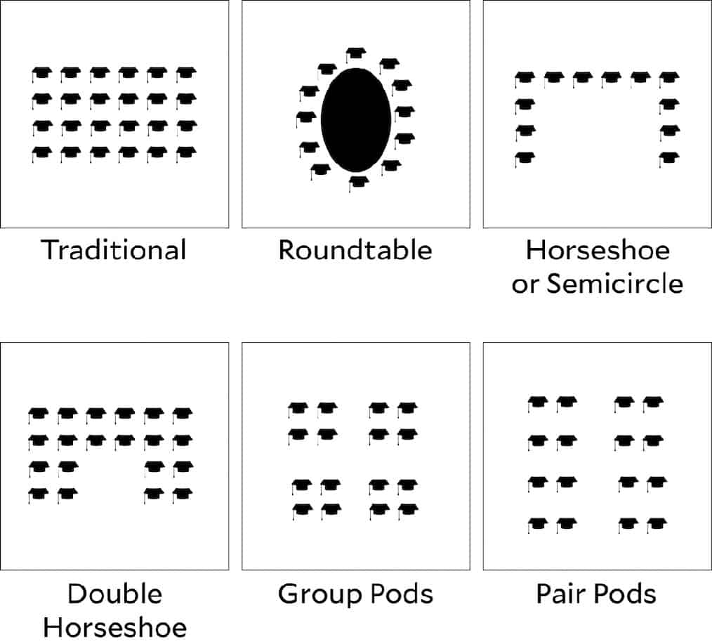 There are many seating designs and much advice over the ‘correct’ seating of students. Some are shown here: