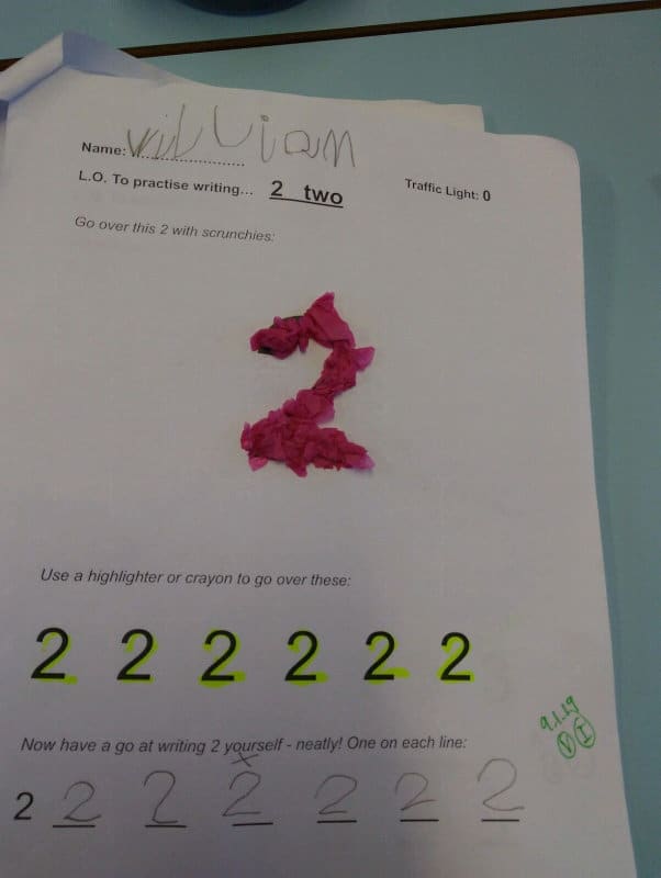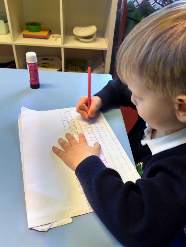 I was expecting to see the younger pupils using a clenched fist, fiercely grabbing hold of a wax crayon or paintbrush; tongue sticking out in concentration! This we call ‘mark making’ and the pupils complete this on an ever growing and ever more challenging range of materials. I certainly did see this and even more opportunities to write than I could list here, but I also saw the unexpected … a small group of pupils working closely without adult support and producing the most beautiful formal handwriting with an understanding and knowledge of lead in and out lines to encourage cursive writing. An amazing thing to achieve when you are four or five years old.