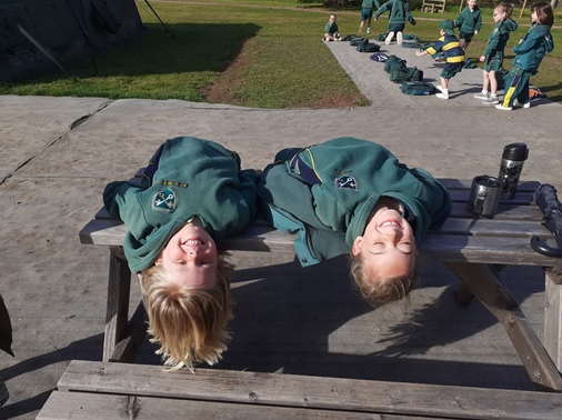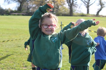 And, finally, here is Lucy and Rose from Year 1, catching some rays before school got going. Note the pupils in the background, who had made an assault course from all their bags and coats!!! (I cannot think why their kit goes missing)? Our pupils really do make sure that every minute of the school day counts.