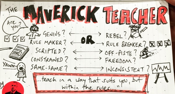 Is there a place for schools to have maverick teachers? These are people who think and act in an independent way, often behaving differently from the expected. Maverick literally means an unorthodox or independent-minded person. The legend of the ‘maverick’ teacher is someone who, perhaps through seeming to break some rules, ended up having a distinctly ‘good’ effect.