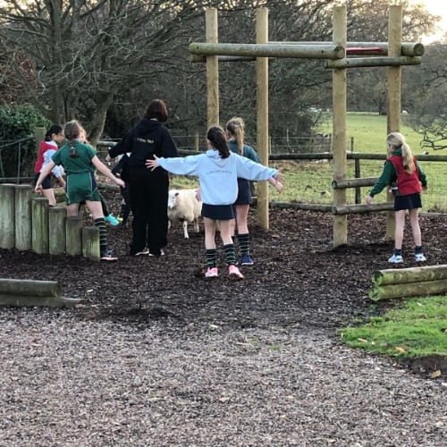 Middle Games practicing our netball marking techniques … against a sheep!!! This moment really embraces our ethos of cross-curricular links and being ‘in the moment of teaching and learning’. Luckily we had Rachel Watson, sheep expert extraordinaire on hand and we are sure she just asked it go back in and off it trotted! I have heard of horse whisperers, but sheep whisperers?