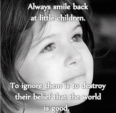 I am that ‘wally’ who, in any situation, looks directly for children’s faces; I always look straight into kids’ faces. The baby in the stroller who is put in the corner. The toddler who is daydreaming in the shop. The staring 8 year old looking out of their car window. The teenager who skulks down the pavement. When I catch their eye, I try to give them my biggest and most genuine, warm smile. The silliest of faces or my friendliest wave. I found the image below, which, for me, sums up of why I do this.