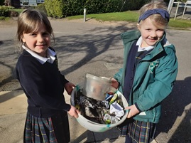 Here is just one fine example that I have been lucky enough to witness this week: Rose P and Georgia G (Year 2) organised and completed a litter pick in the wild woods area all by themselves.