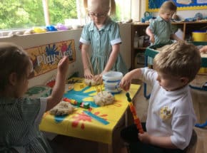 The Early Years are encouraged to develop their creative minds through engaging in a wide range of activities which are embedded into the EYFS framework on a daily basis. Recently I had the pleasure of observing the Nursery children working on some beading and collage work. It was encouraging to see an early development in their fine motor skills associated with cutting, pasting, experimenting with painting techniques and being fully immersed in creative play activities. The children were particularly proud of their mermaid creation and treasure map designs.